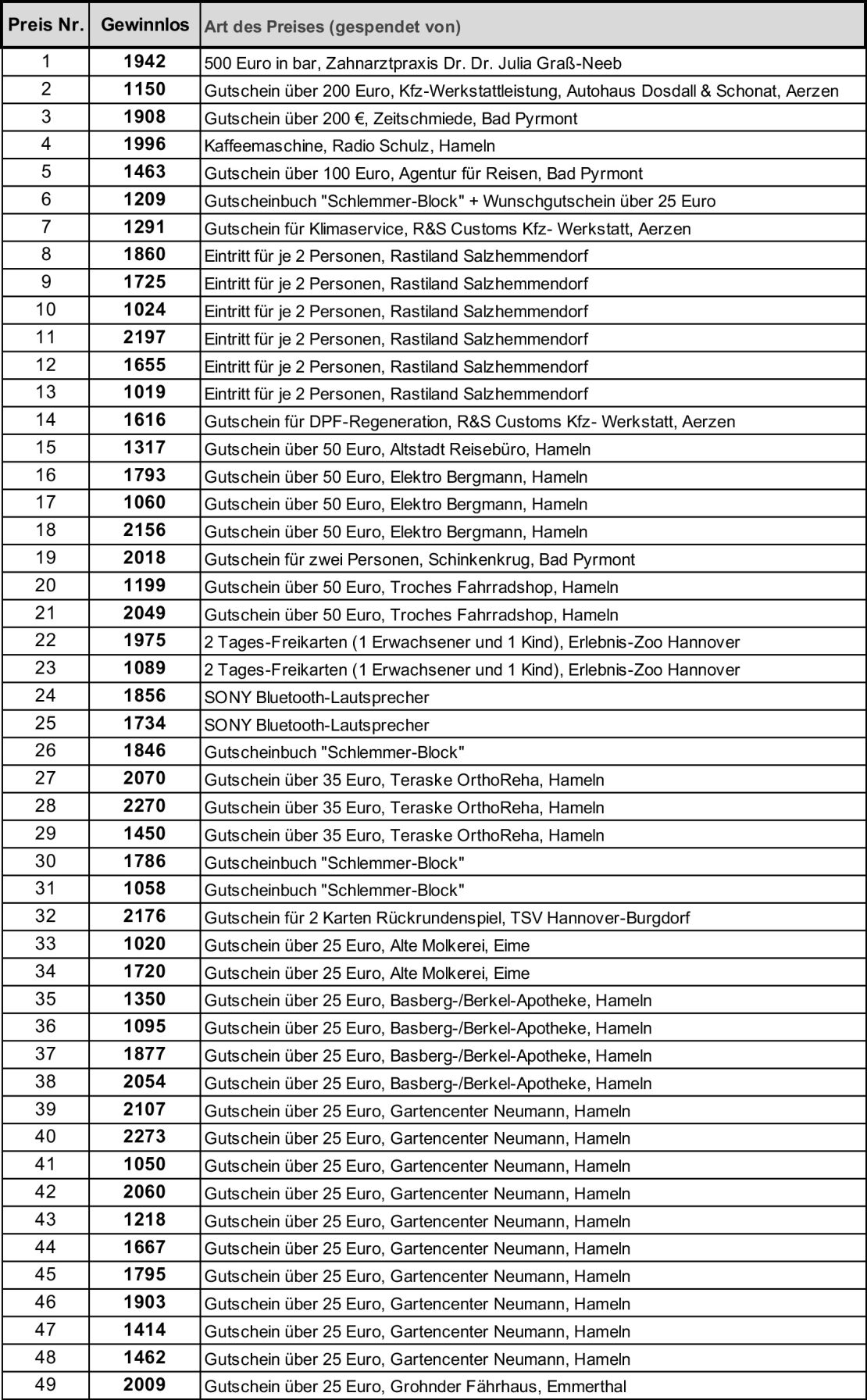 Die Ziehung der Weihnachtskugelaktion des Lions Clubs Hameln-Pyrmont Lumina 2020 hat unter notarieller Aufsicht und Ausschluss der Öffentlichkeit stattgefunden. Alle folgenden Angaben sind ohne Gewähr.